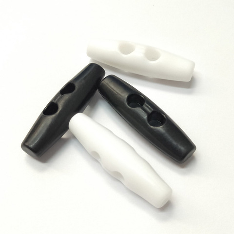 พลาสติกเคลือบเงาขนาด3.8ซม. 5ซม. แบบ DIY กระดุม2รูสำหรับตกแต่งเสื้อผ้าสามารถซักได้สีดำรูปไข่สีขาว